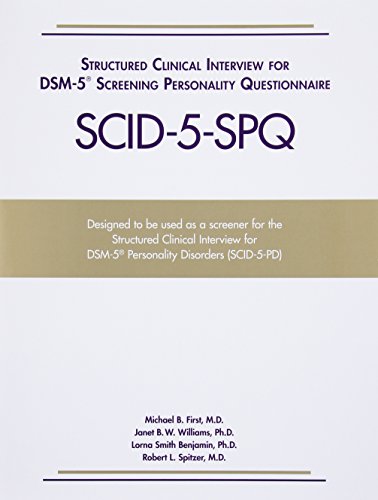 This Structured Clinical Interview for DSM-5 Personality Disorders SCID-5-PD + Structures Clinical Interview for DSM-5 Screening Personality Questionnaire SCID-5-SPQ usually are reliable for you who want to be described as a successful person, why. The key reason why of this Structured Clinical Interview for DSM-5 Personality Disorders SCID-5-PD + Structures Clinical Interview for DSM-5 Screening Personality Questionnaire SCID-5-SPQ can be one of many great books you must have is usually giving you more than just simple reading through food but feed you with information that probably will shock your earlier knowledge. This book is actually handy, you can bring it everywhere and whenever your conditions at e-book and printed ones. Beside that this Structured Clinical Interview for DSM-5 Personality Disorders SCID-5-PD + Structures Clinical Interview for DSM-5 Screening Personality Questionnaire SCID-5-SPQ giving you an enormous of experience such as rich vocabulary, giving you tryout of critical thinking that we understand it useful in your day pastime. So , let's have it and enjoy reading.